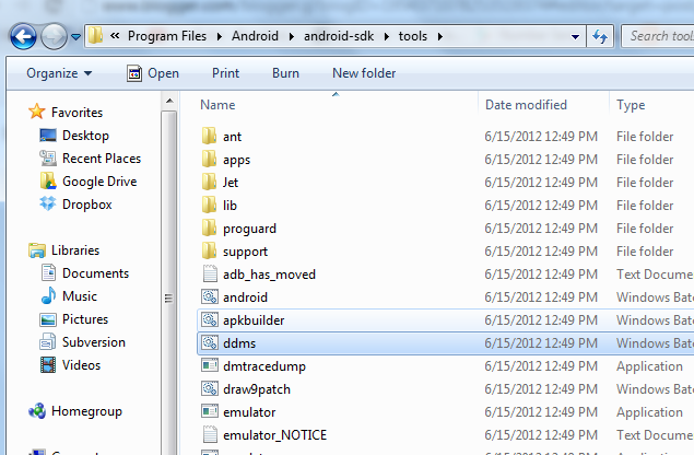 Double-click on ddms and this window should open: