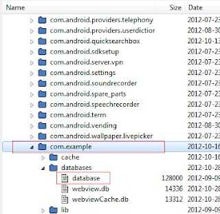 So if you want to pull out the database from emulator you should use ddms (ddms is located in Android sdk folder e.g. my Android folder is installed ProgramFiles so the full path for me is: C:Program FilesAndroidandroid-sdktools, but you should use you own path where your Android is installed).
