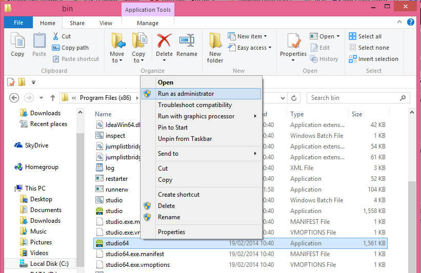 C:Program Files (x86)Androidandroid-studiobin
