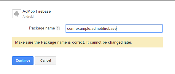 - Add the package name of your app you (in our example we have to use the package name we used when we configured our app directly in Firebase)