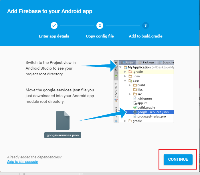 - Now, after you press Add App button, the google-services.json will be automatically downloaded