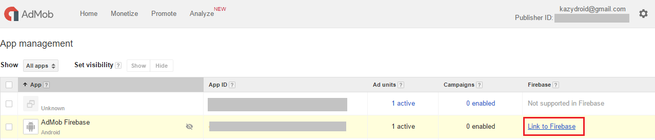 If you want to see Firebase Analytics information in AdMob you have to link your app from AdMob account with Firebase project we have just configured earlier.