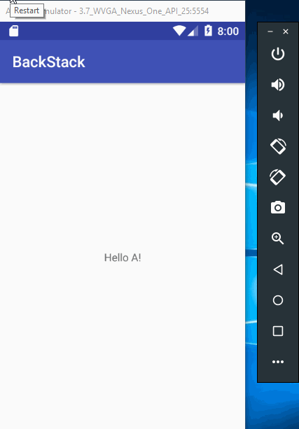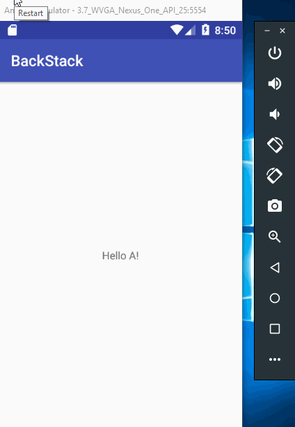 Run #0: ActivityRecord{db8c1c7 u0 ro.tutorial.funcode.backstack/.A t267}